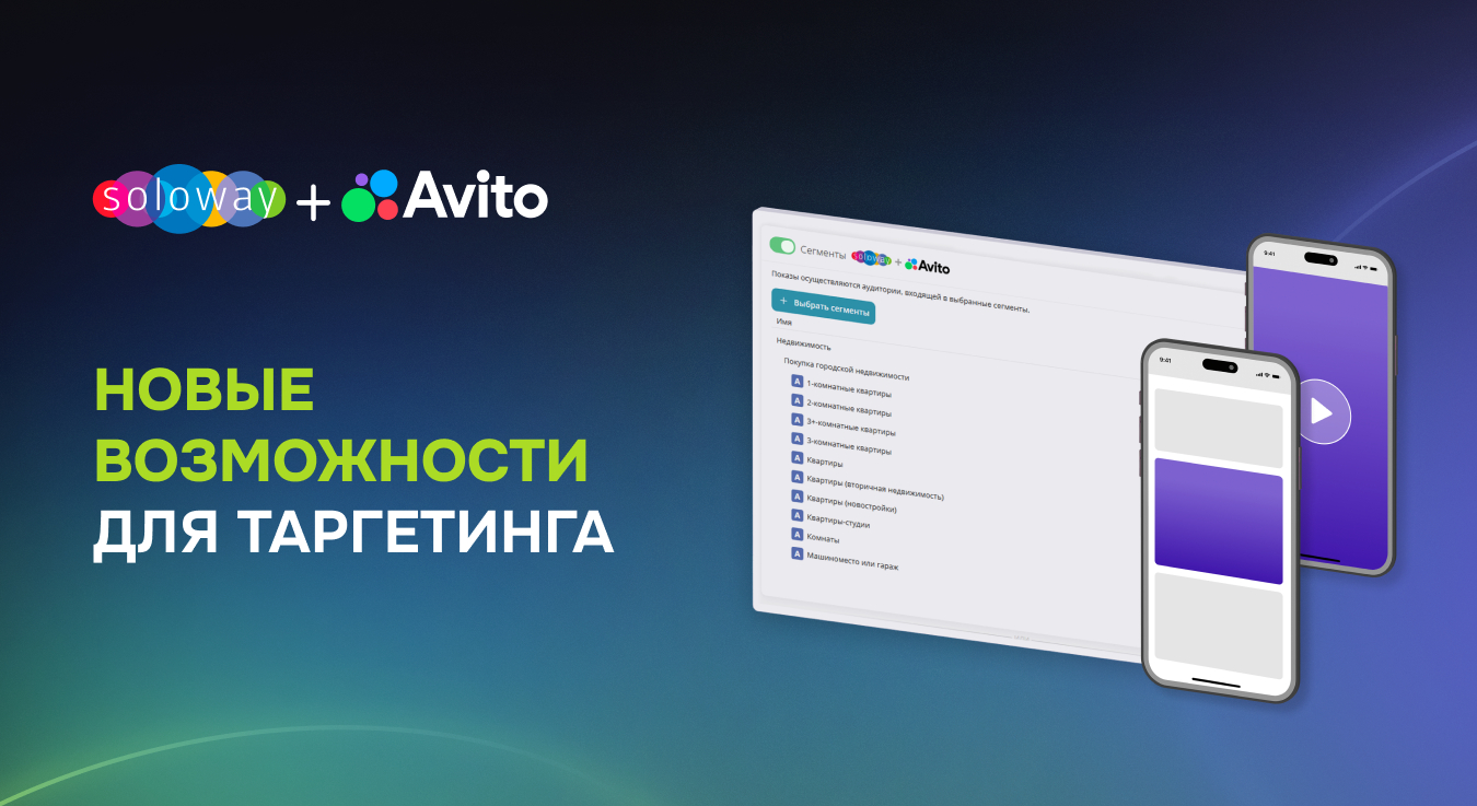 Рекламная платформа Soloway увеличила количество аудиторных сегментов для таргетинга за счет поэтапной интеграции с Авито. На первом этапе у клиентов Soloway появилась возможность таргетинга по детальным in-app сегментам на основании покупательского интереса.