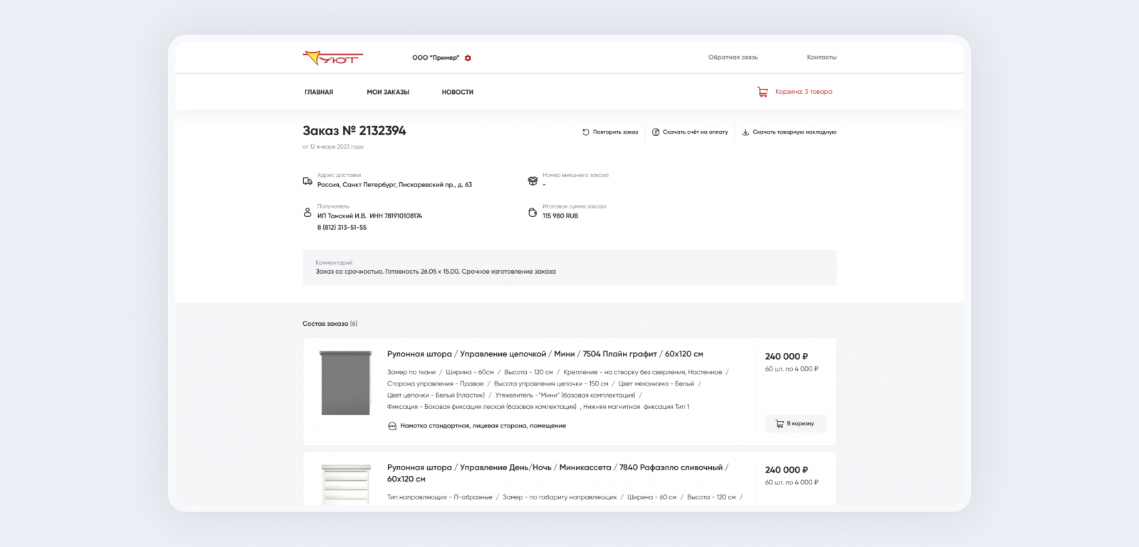 УЮТ пришли к нам с запросом на разработку личного кабинета с функционалом конструктора товаров, чтобы можно было в онлайн-формате посмотреть итоговый результат и в пару кликов оформить заказ.