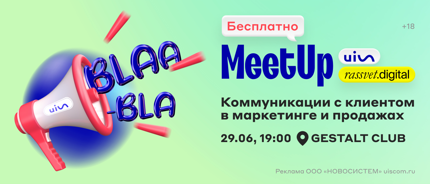 29 июня UIS вместе с PR-агентством Rassvet.digital проводит бесплатный Bla-bla_MeetUp о том, как легко и эффективно выстраивать коммуникации с клиентами в маркетинге и продажах.