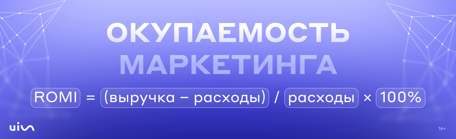 Показывает, сколько прибыли приносит каждый рубль рекламы. Если показатель положительный, маркетинг приносит прибыль.