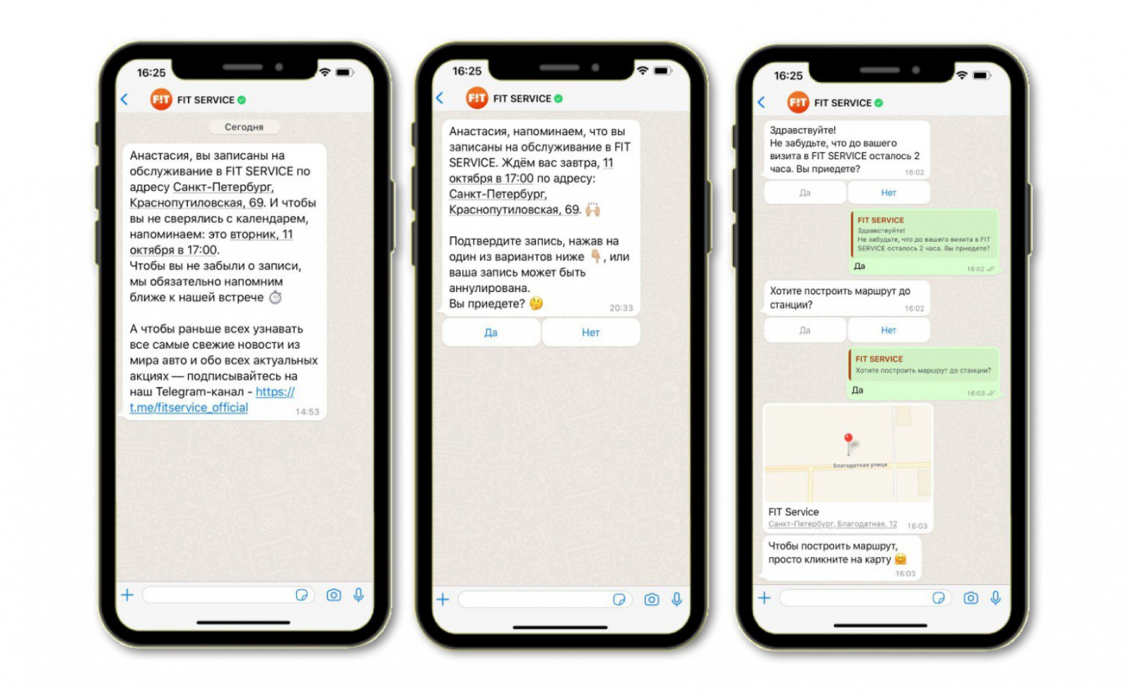 С цепочками разобрались. А что насчет напоминаний? Мы взяли рассылку от Fit Service: клиенты автоцентра получают напоминания сразу после записи, за 21 час и за 2 часа до визита. Цепочка, которую написал человек, оказалась эффективной и увеличила число клиентов, которые доезжают до сервиса на 7,5%.