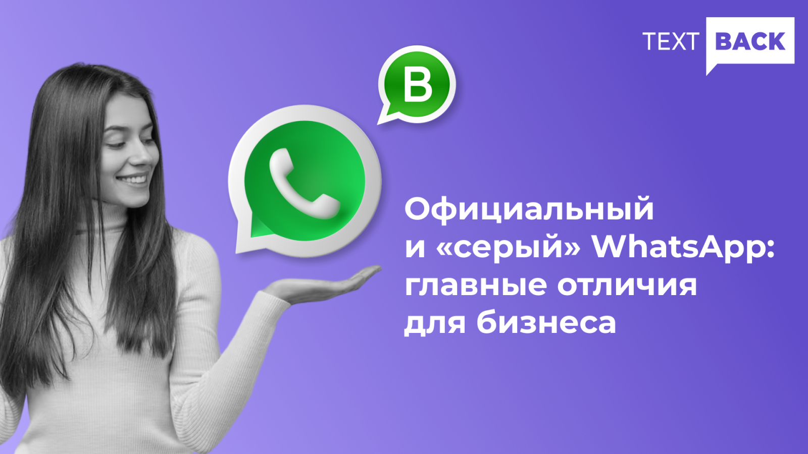 С «белым» WhatsApp вы можете подать документы для получения статуса верифицированного бренд-аккаунта с зелёной галочкой около имени отправителя. Вместо неизвестного номера телефона будет отображаться название бренда. Такому аккаунту клиенты доверяют больше.