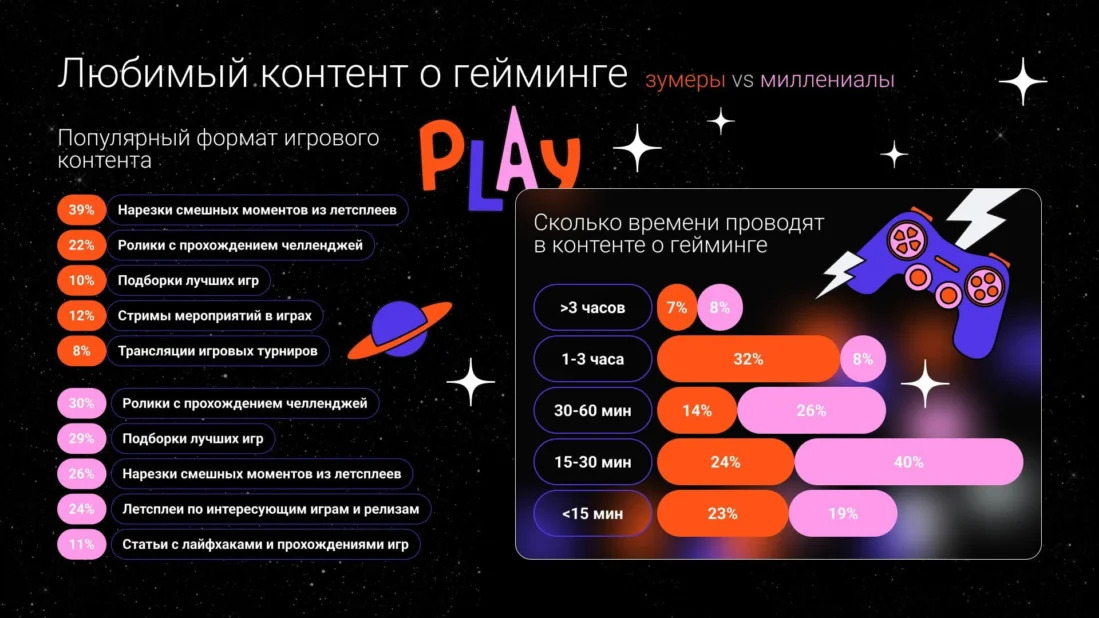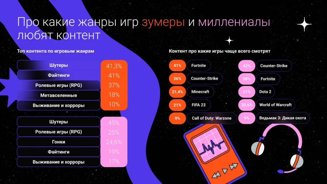 Более 57 млн россиян играют больше одного раза в неделю, более 10,4 млн — активны в теме киберспорта. Самыми просматриваемыми категориями на трансляциях Twitch стали Dota 2, Casino Slot Machine, CS:GO, Diablo IV.