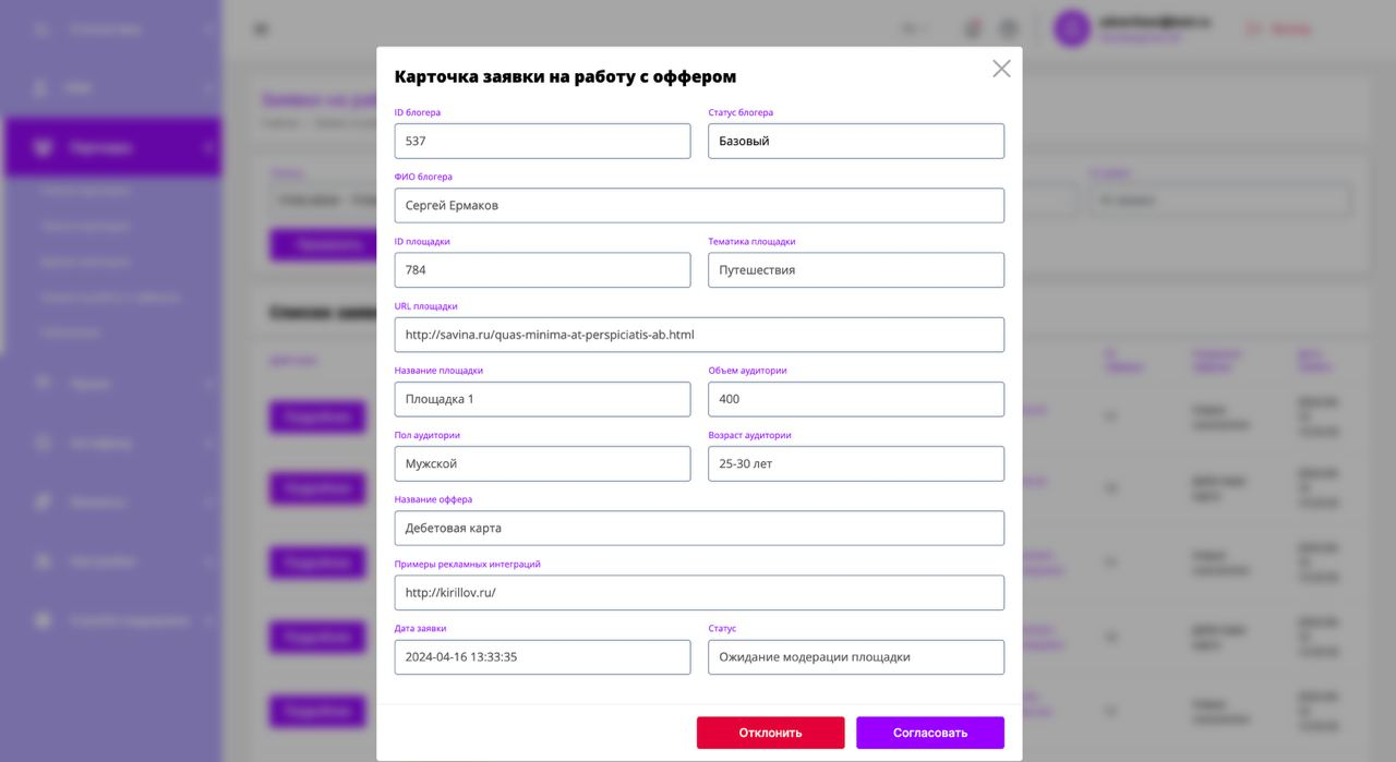 Блогеры требуют к себе повышенного внимания, их не всегда устраивают шаблонные методы коммуникации с рекламодателями. Исходя из этого мы предлагаем настройку динамических уведомлений, рассылок в Telegram, обучение (презентации и видео) и пр. Данные инструменты позволяют выстроить грамотную навигацию по платформе, а также тесную взаимосвязь между блогером и рекламодателем.