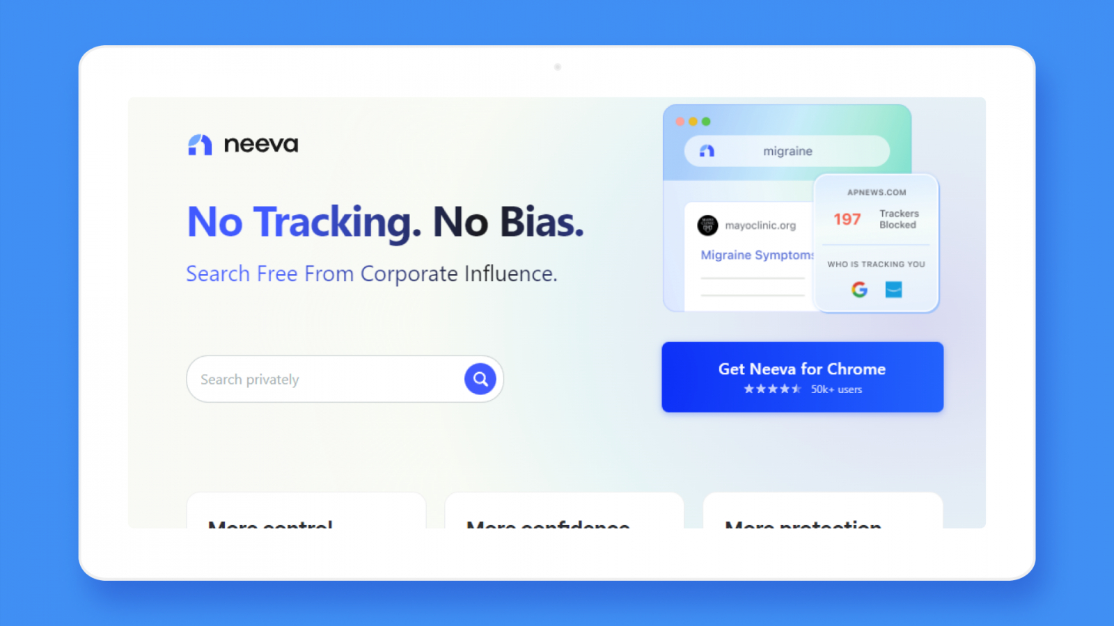 Поисковик от парней, которые стояли у истоков Google. Не засоряет выдачу рекламными объявлениями, не собирает данные о пользователях и блокирует сторонние трекеры. Если в привычных поисковиках реклама занимает до 40% выдачи, то Neeva выдает 100% органики, повышая шансы скорее найти именно то, что вы искали.