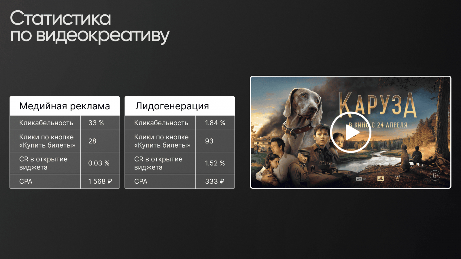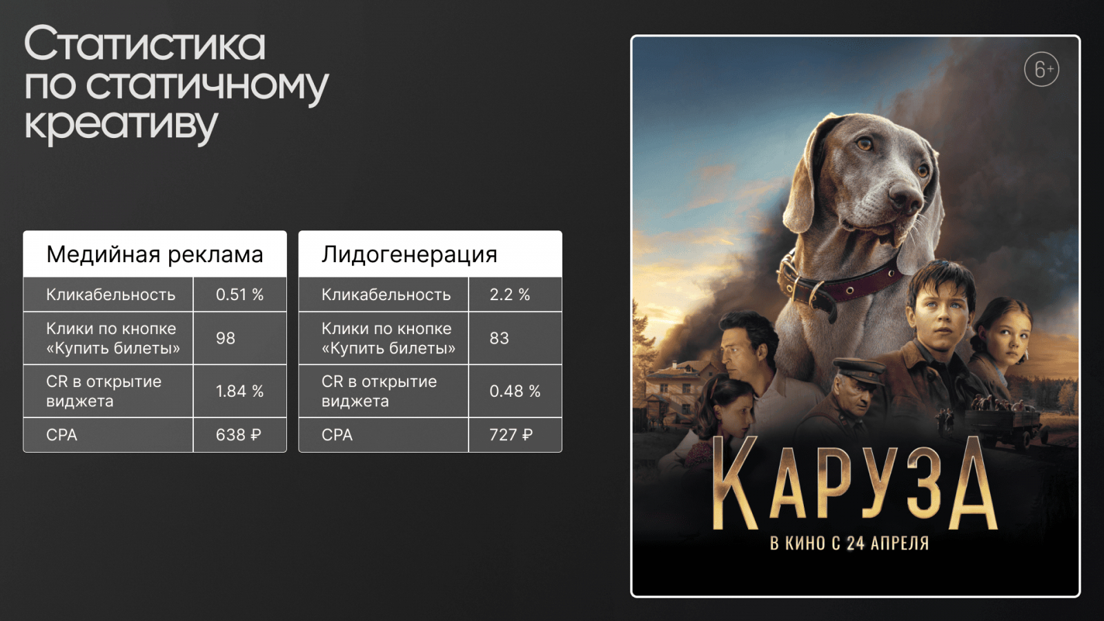Этот проект стал для нас проверкой на скорость, гибкость и способность добиваться результата в условиях ограничений. Мы собрали работающую связку: сегментированный таргетинг, сильные фотокреативы и минималистичную посадочную. Мы не просто запустили рекламу — мы смогли донести историю фильма до тех, кому она действительно откликнулась. А это и есть главная задача хорошего маркетинга.
