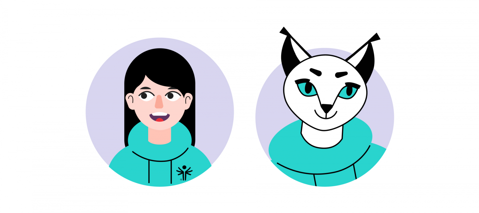 В нашем сервисе есть аватарка участника и маскот — эти персонажи всегда смотрят в сторону.