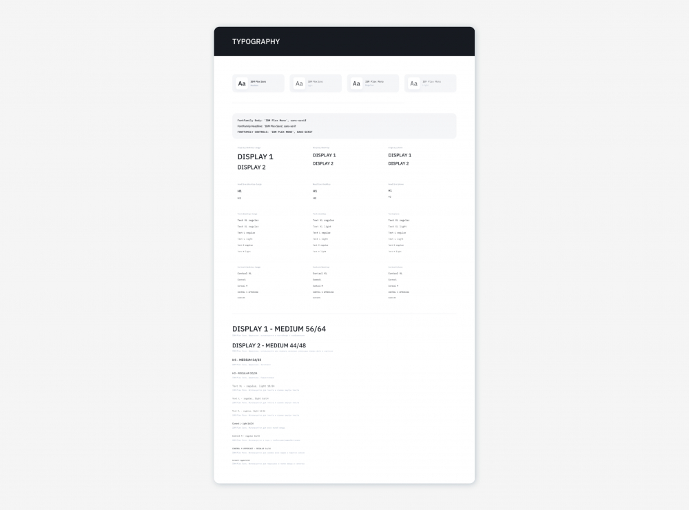 Раздел UI kit со шрифтами включает в себя рекомендации по использованию шрифтов, интервалов, размеров и других параметров.