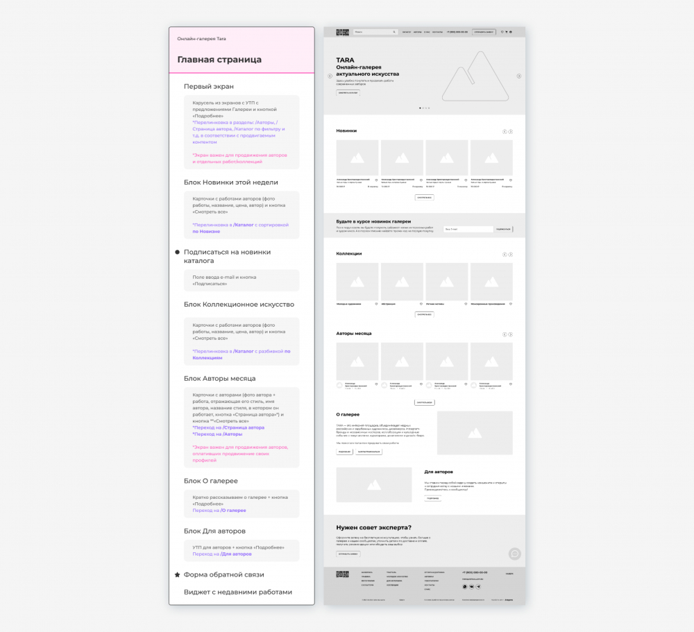 Перед разработкой UI kit мы создаем структуру сайта или сервиса и отрисовываем прототип. Затем утверждаем его с клиентом, выбираем референсы и оцениваем, какие объекты и элементы будем добавлять на страницу.