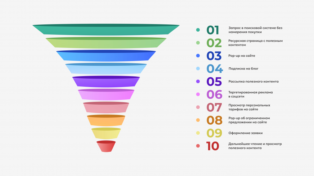 Представим, что за неделю на сайт пришло 5 000 пользователей. Из них 3 500 изучали страницы с товарами, 170 человек оставили заявки и 25 оформили заказ после согласования деталей с менеджером.