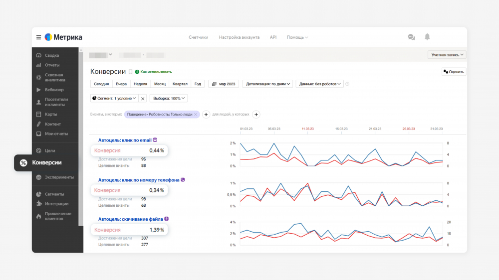 Показатель CR можно найти в отчете «Конверсии». Так, вы сможете отследить воронку, определить эффективность целей и внести улучшения.
