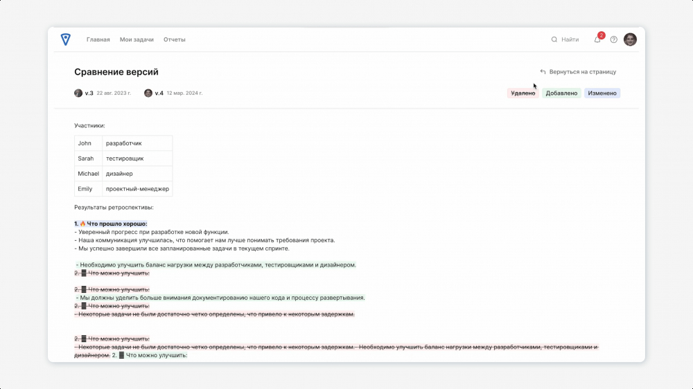 - Формирование отчетов по проектам, задачам и сотрудникам.
