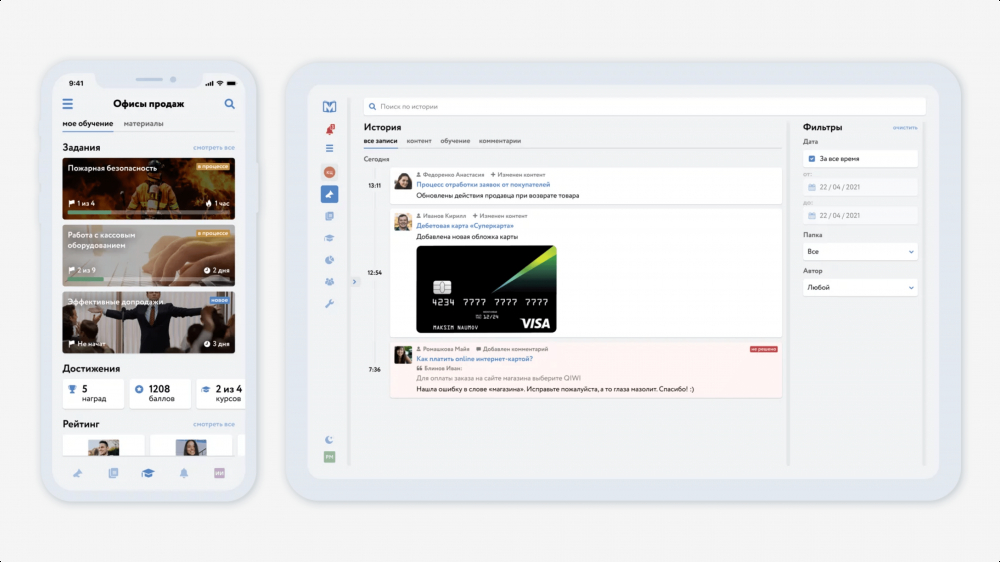 - Возможность добавлять онлайн-курсы и распределять их по отделам.