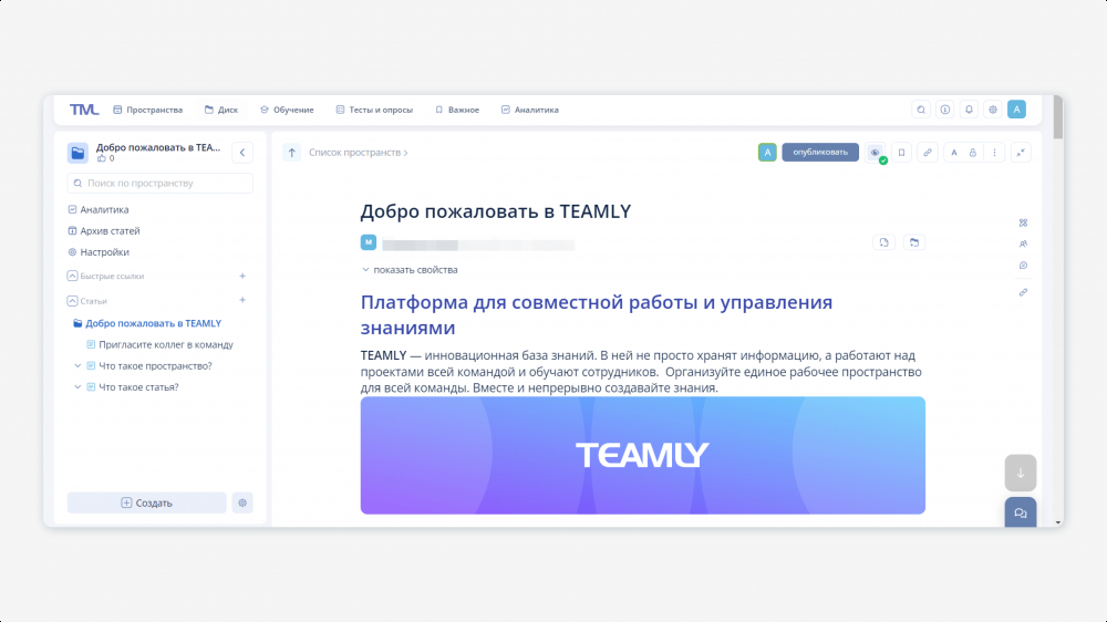 Teamly — платформа для обучения сотрудников и работы с базами данных.