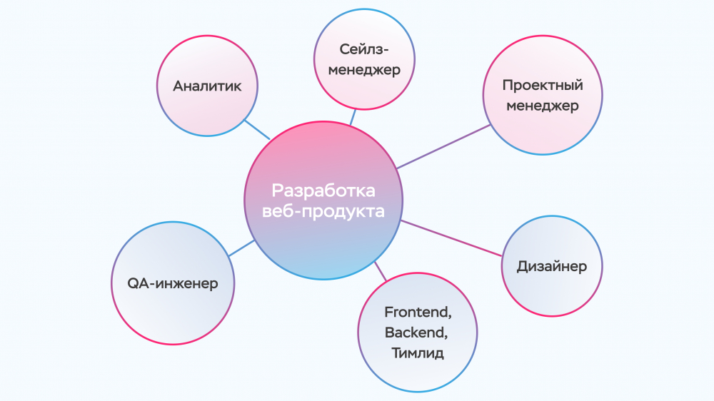 Минимальный состав команды, которая участвует в разработке сайта или приложения с нуля:
