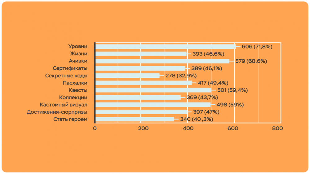 Игровые механики воздействуют на различные стимулы, и это пробуждает интерес. Например, левелы и ачивки, которые мы внедрили на платформе, работают на следующие триггеры:
