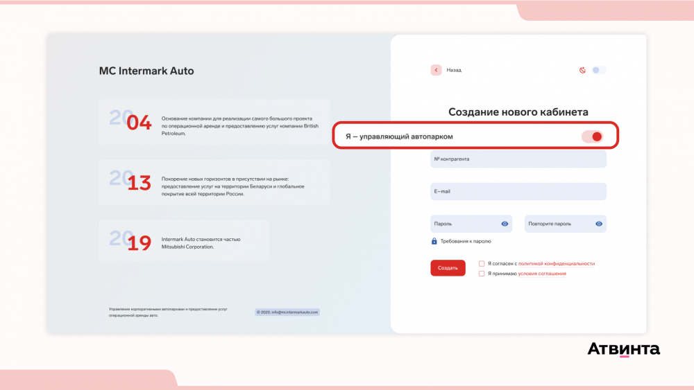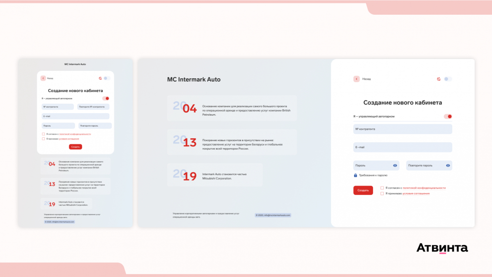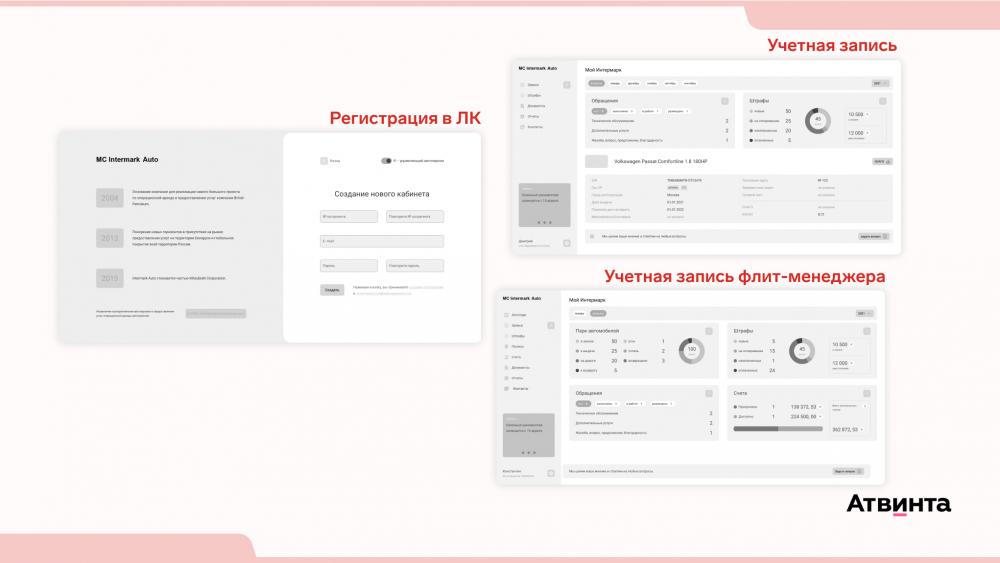 Нашей целью была разработка личного кабинета с двумя типами учетных записей для MC Intermark Auto.