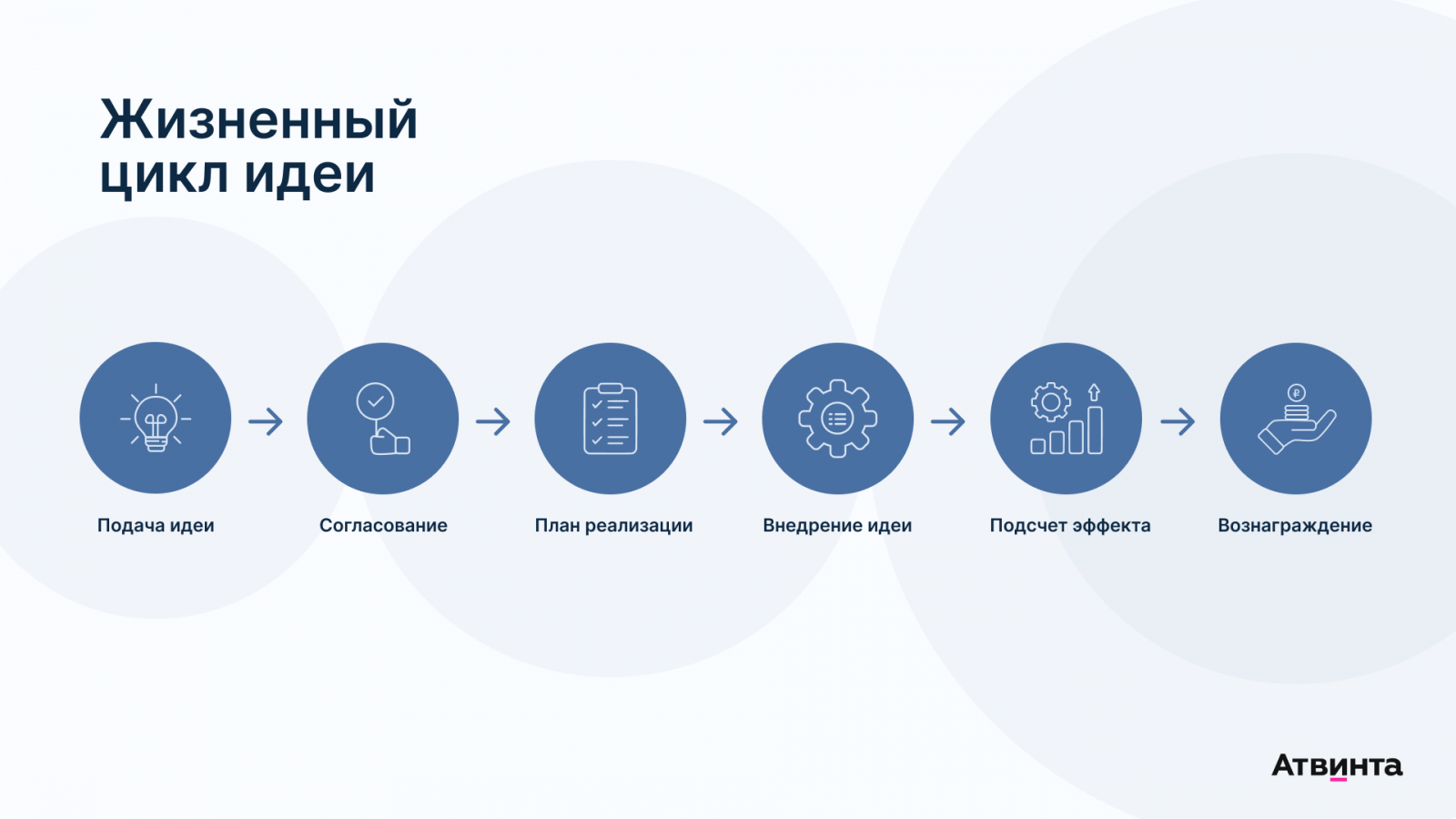 Заказчик обратился к нам, чтобы навести порядок, собрать все процессы по улучшениям в одном пространстве и получить единую базу данных. Нам предстояло разработать экосистему сервисов, которая оцифровывает весь жизненный цикл внедрения идеи.