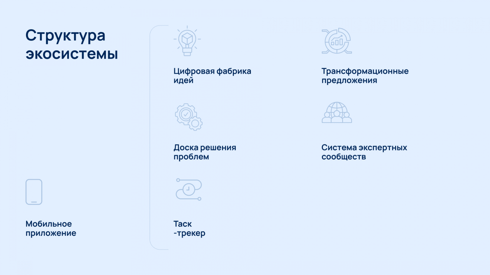 Экосистема объединена мобильным приложением, где можно подавать идеи и сообщать о проблемах.