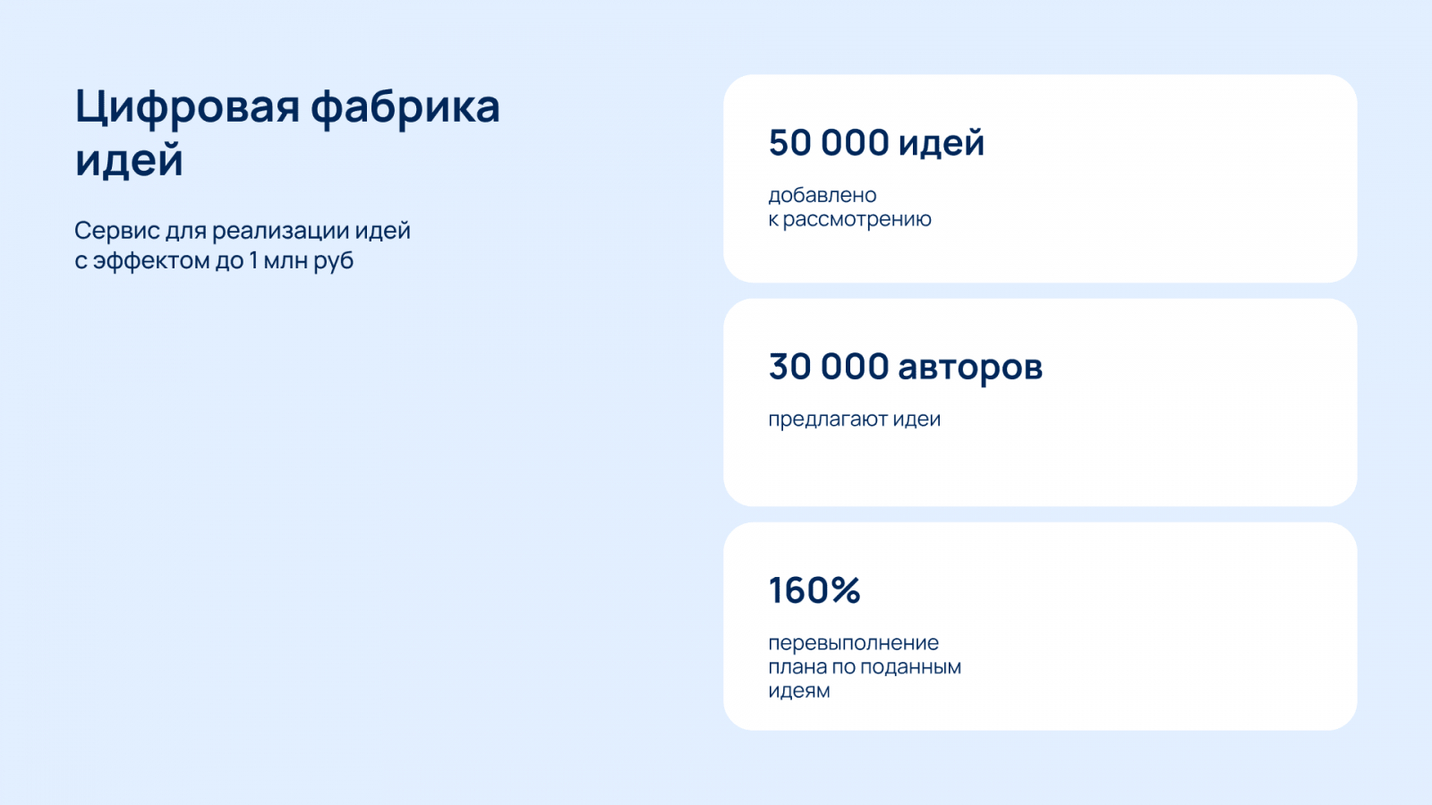 Зарегистрированные в этом сервисе и реализованные идеи принесли компании +20 млрд руб к прибыли.