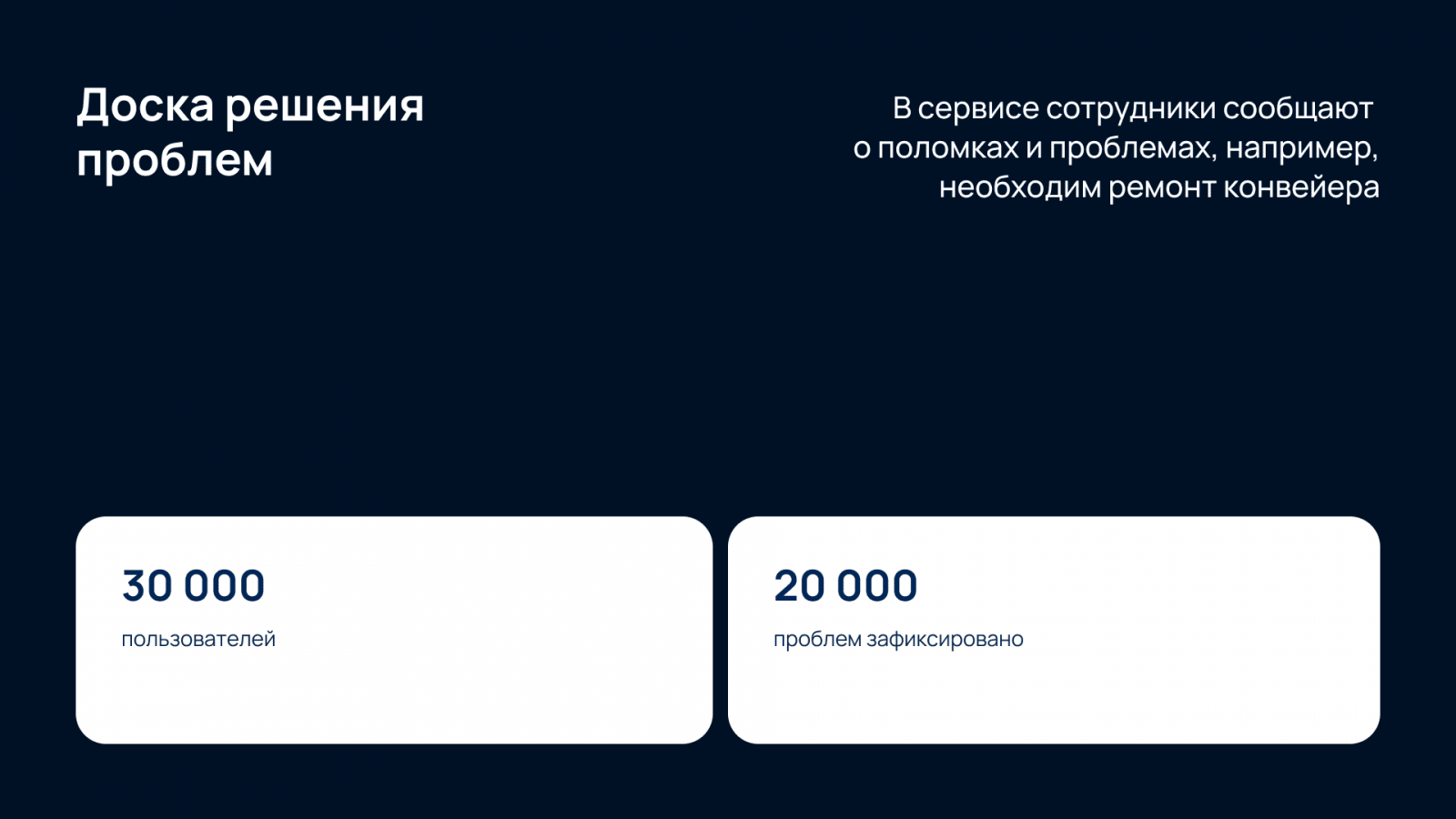 Такой сервис ускоряет устранение проблем на производстве, делает подачу сообщений более удобной, а также позволяет найти в отчетах проблемные участки и обратить на них внимание руководства.