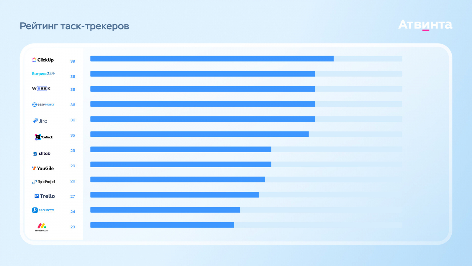 Для выборки взяли сервисы, с которыми работали наши пользователи, а также популярные на рынке трекеры. По итогам составили балловый рейтинг, который основан на насыщенности функционала и пользовательском опыте.
