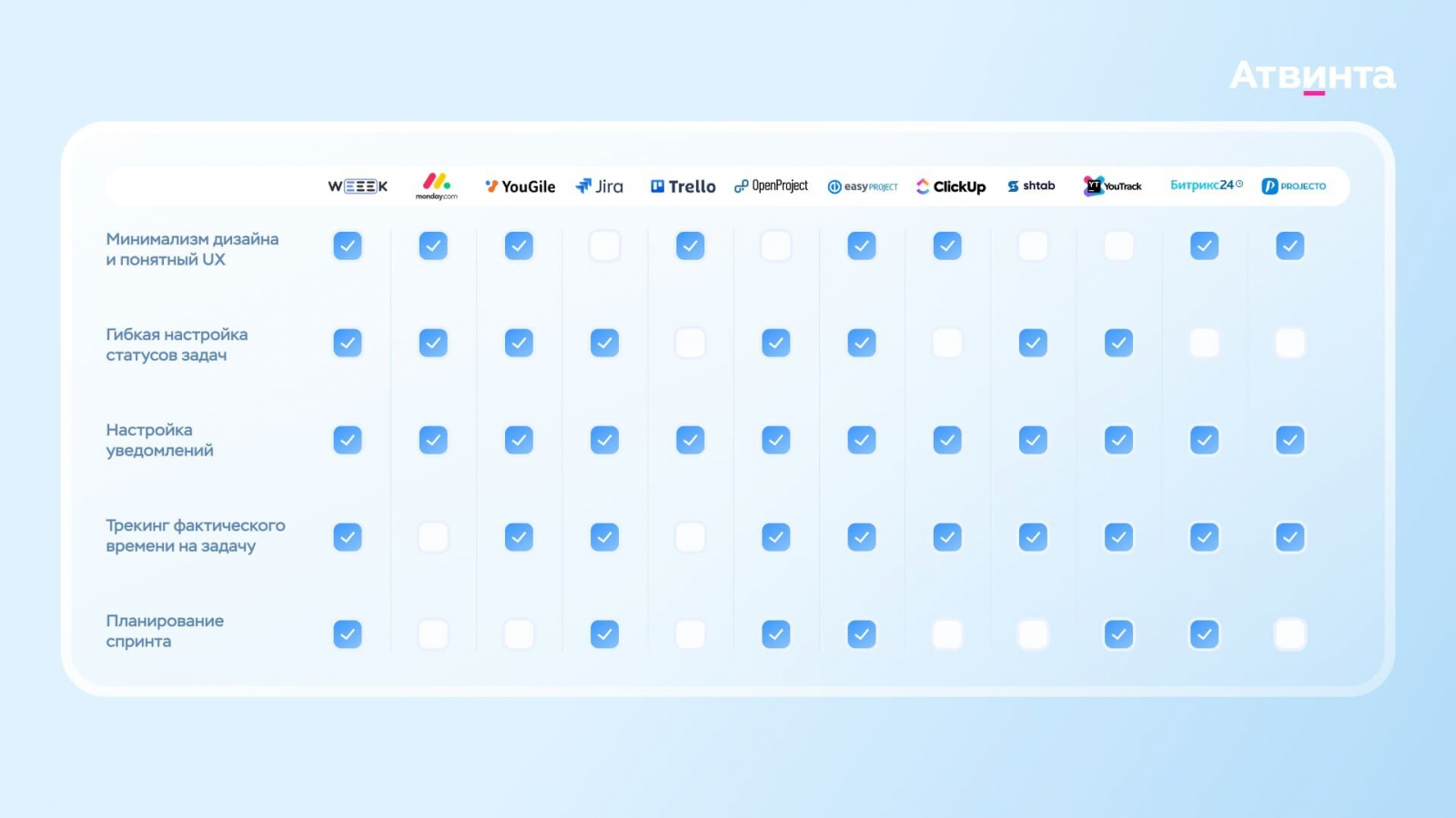 Смотреть таблицу со сравнением таск-трекеров от аналитиков Атвинты
