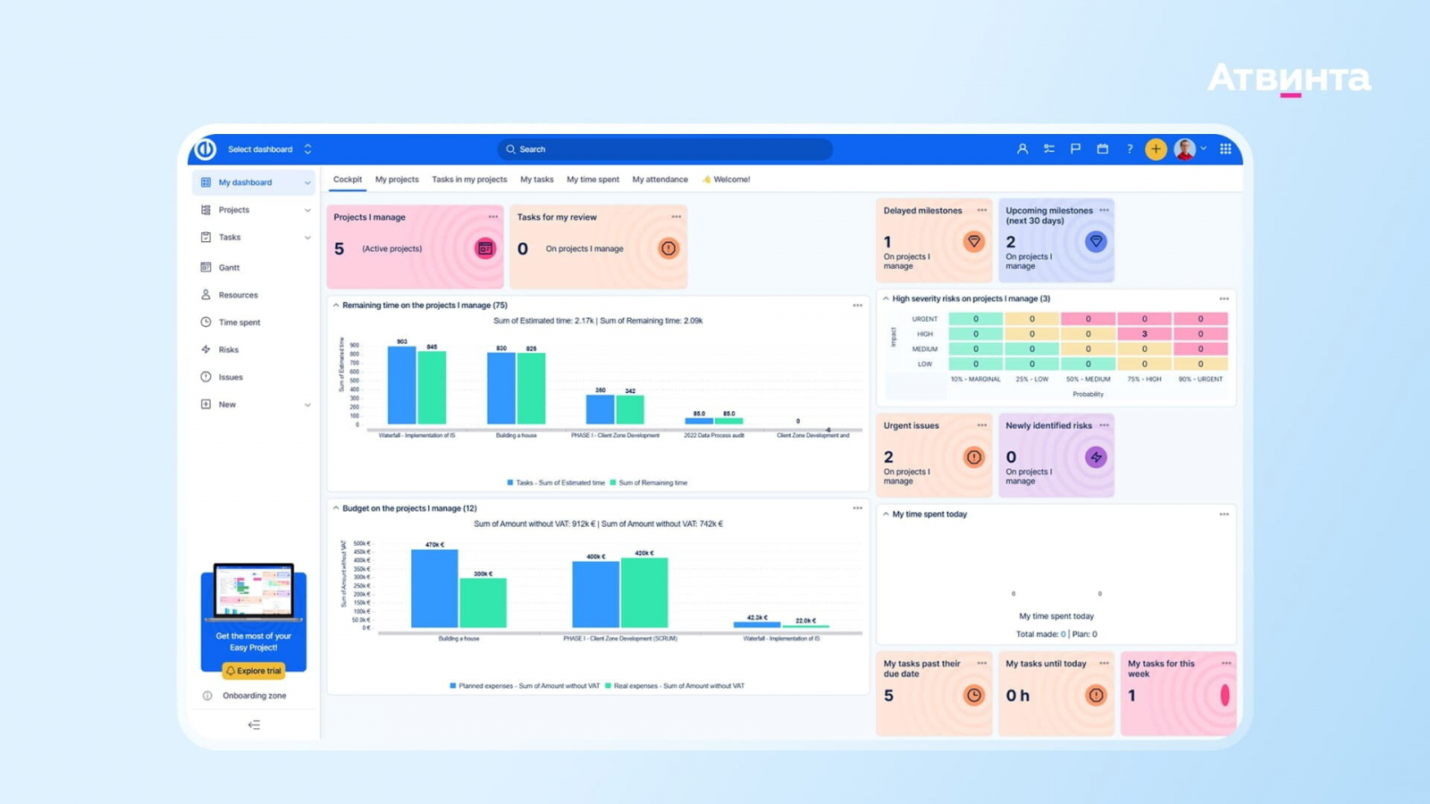 Easy Project — система для компаний, которым важно контролировать бюджеты, распределять ресурсы и вести сложные проекты.