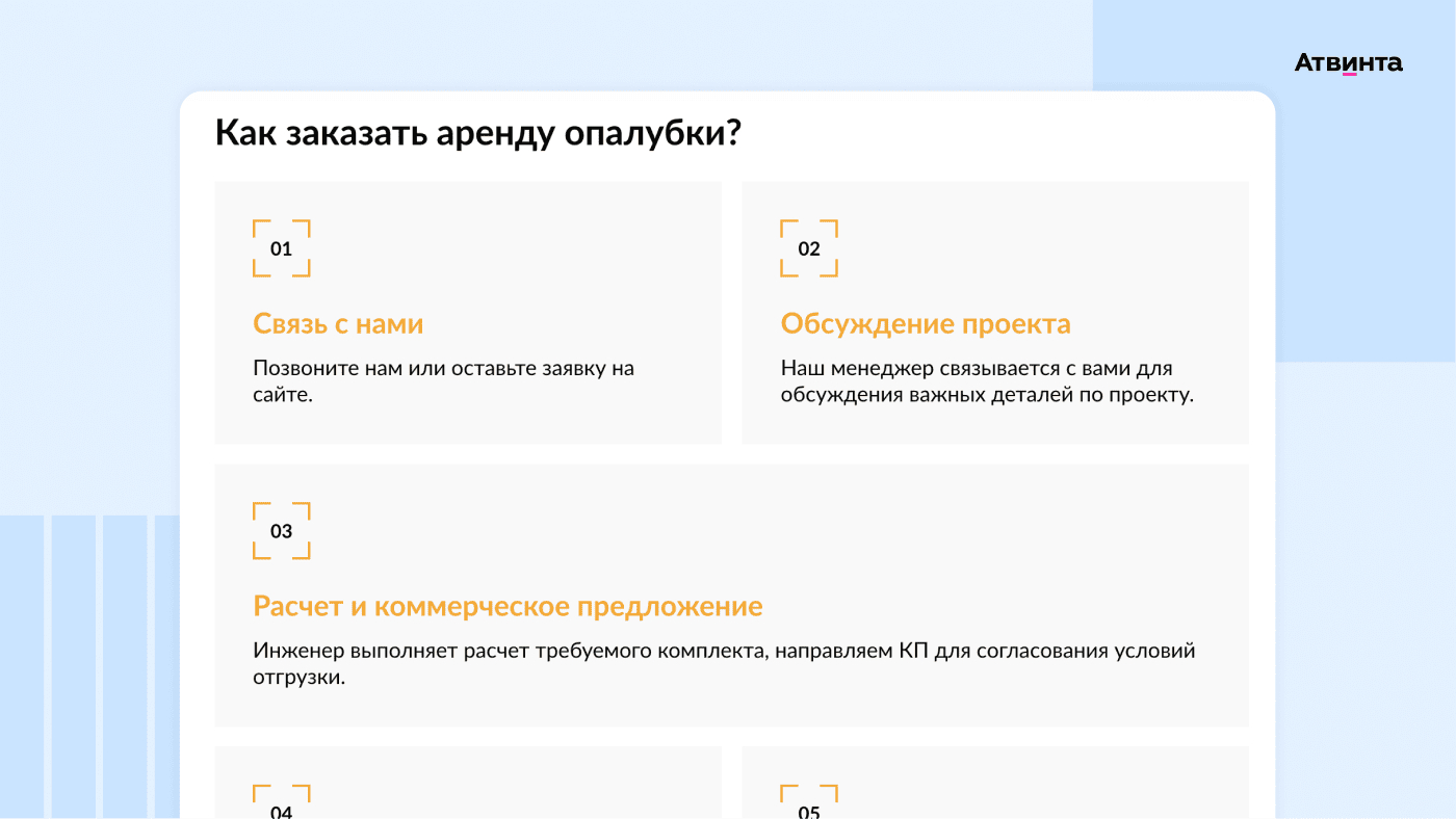 Работы по SEO начали с формирования семантического ядра: проанализировали, какие фразы используют клиенты при поиске аренды и покупки опалубки, учли разбивку по направлениям, регионам и типам оборудования.