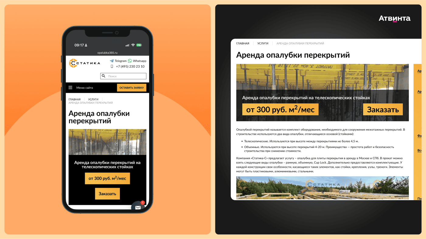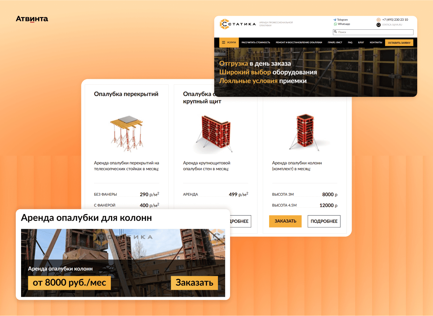 «Статика-С» — компания, которая специализируется на аренде и продаже опалубки и комплектующих для монолитного строительства. Работает в B2B-сегменте и сотрудничает с застройщиками жилых, коммерческих и промышленных объектов.