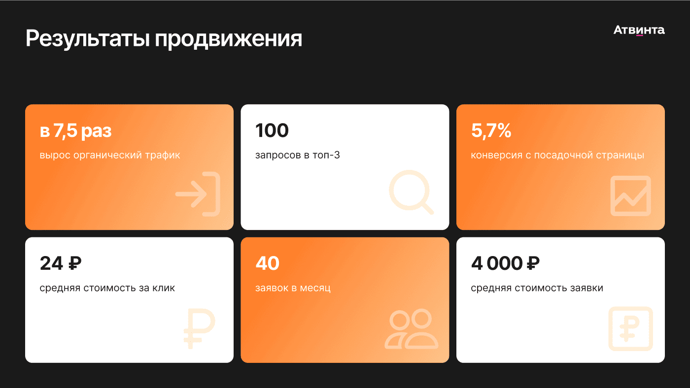 Это Атвинта. Узнайте, как улучшить сайт, подключить контекстную рекламу и настроить SEO для роста органического трафика и целевых запросов.
