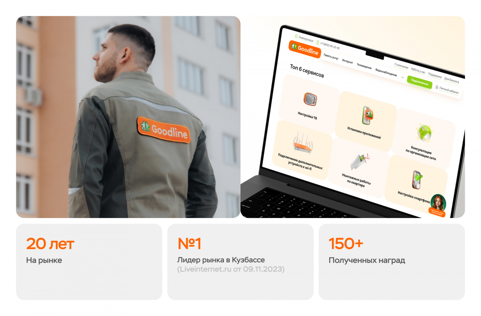 Goodline — топ-1 провайдер в Кемеровской области (по версии Liveinternet.ru от 09.11.2023). Компания подключает интернет, телевидение, а также устанавливает видеонаблюдение. Goodline обслуживает как физические лица, так и организации.