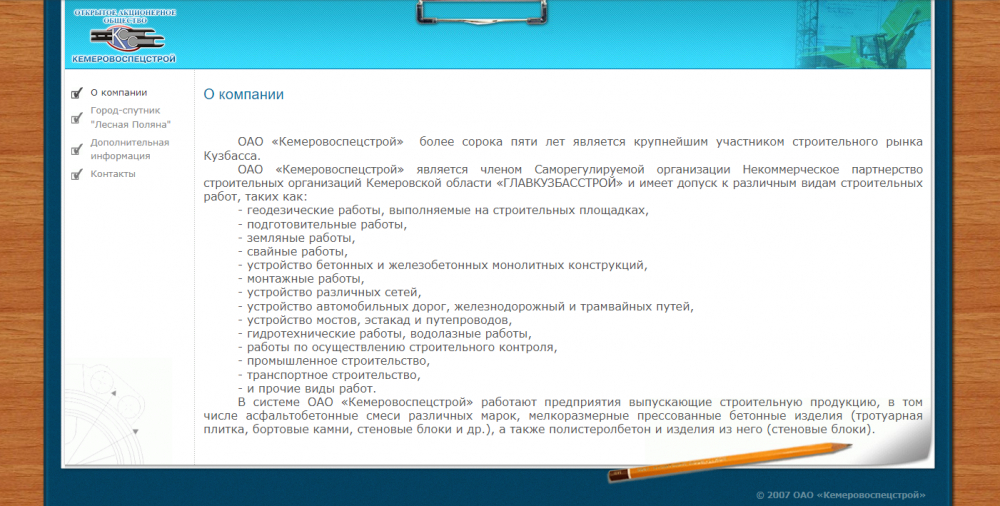 «Современный корпоративный сайт является обязательным атрибутом для таких крупных предприятий, как «Кемеровоспецстрой». Устаревший дизайн и недостаток информации может дискредитировать имидж предприятия и создать неправильное впечатление о компании, даже если в проектах она применяет самые передовые технологии».