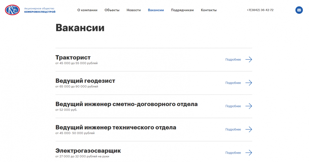 Объемы производства растут, и в штат компании постоянно набирают новых сотрудников: инженеров, мастеров, слесарей. Мы сделали раздел с вакансиями, чтобы у заказчика появился еще один канал для поиска работников.
