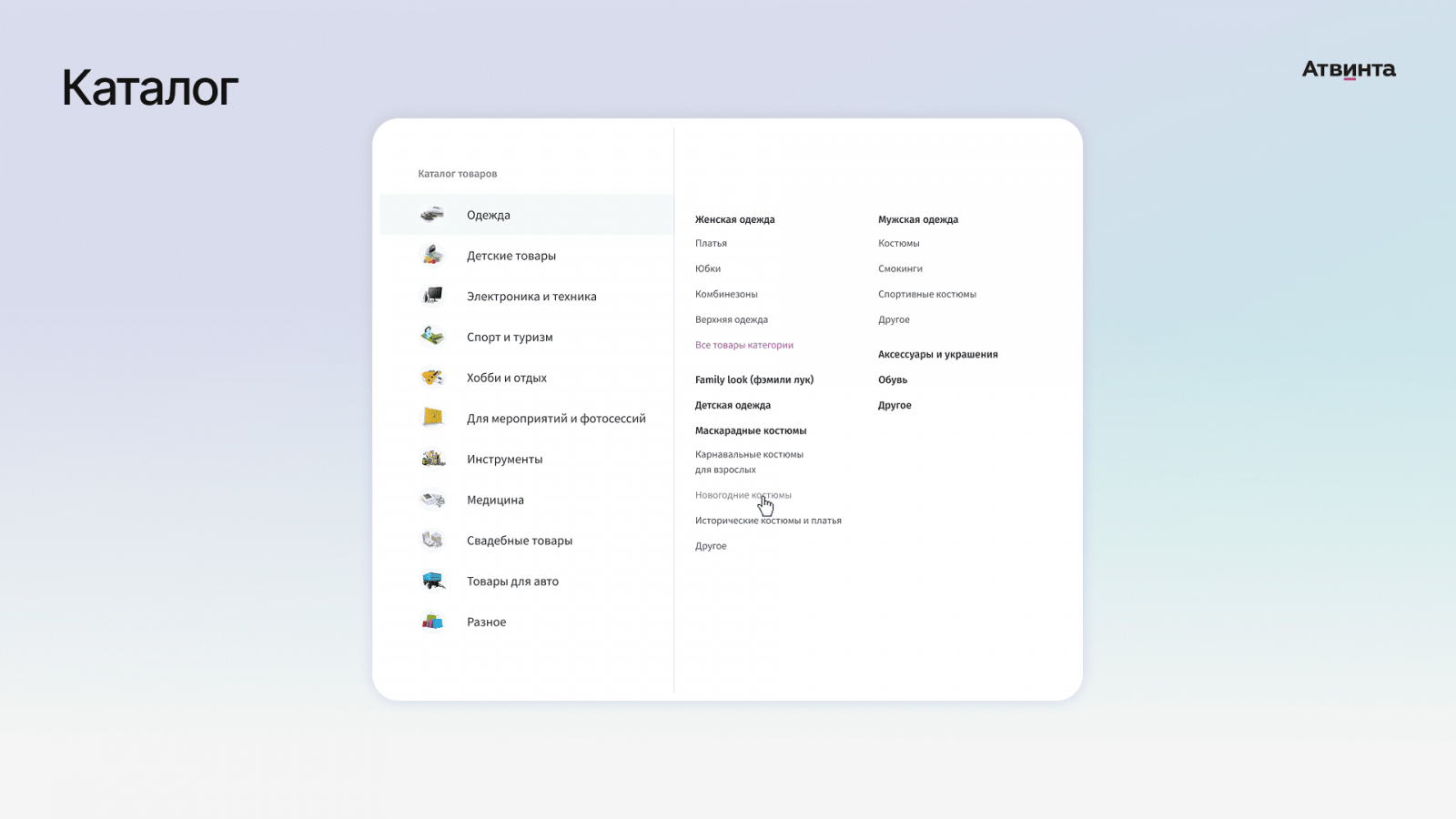 Для арендаторов мы реализовали удобную навигацию по разделам товаров. Они размещены и сгруппированы с учетом наиболее частых запросов пользователей.