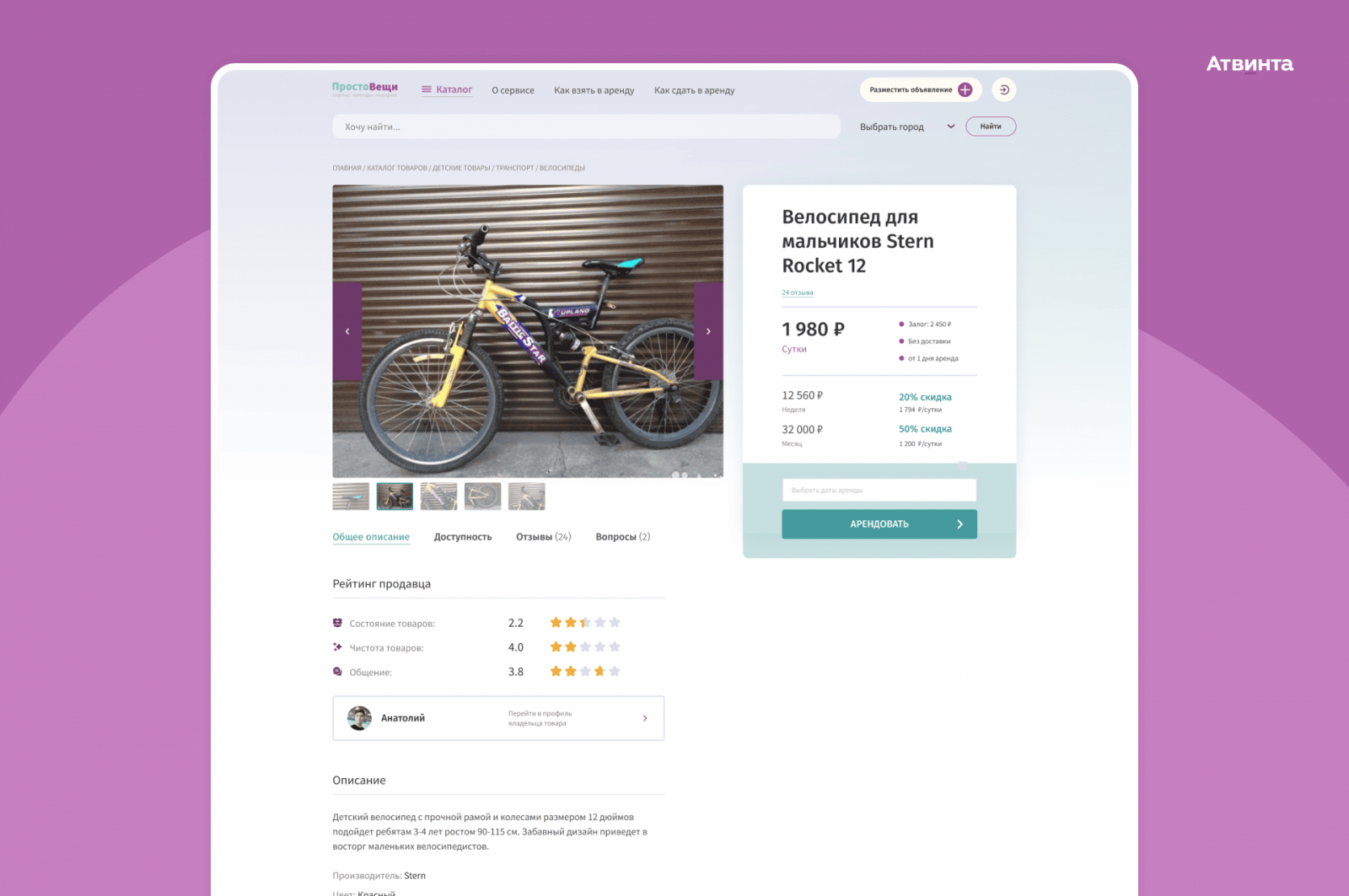 Особое внимание мы уделили структуре страниц товаров — они содержат исчерпывающую информацию для арендатора.