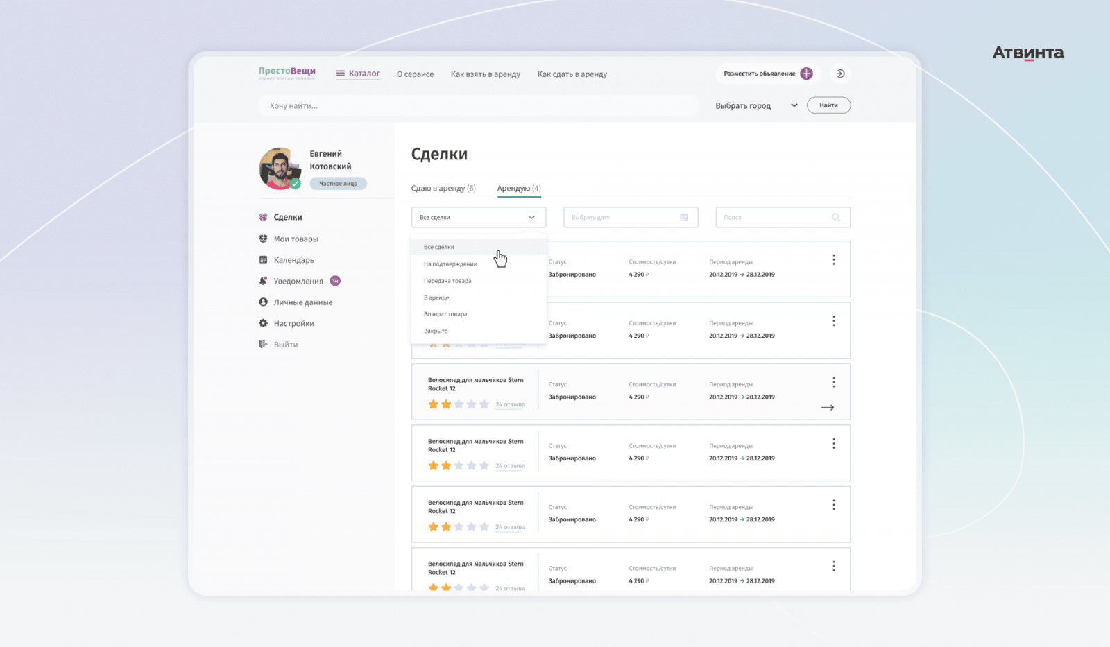 На мой взгляд, нам удалось воплотить изначальную идею и создать сервис аренды с большим потенциалом. Как владелица проката и пользователь платформы, я оценила наглядный календарь, удобную форму добавления товаров и страницу самой сделки, где отображается вся необходимая информация