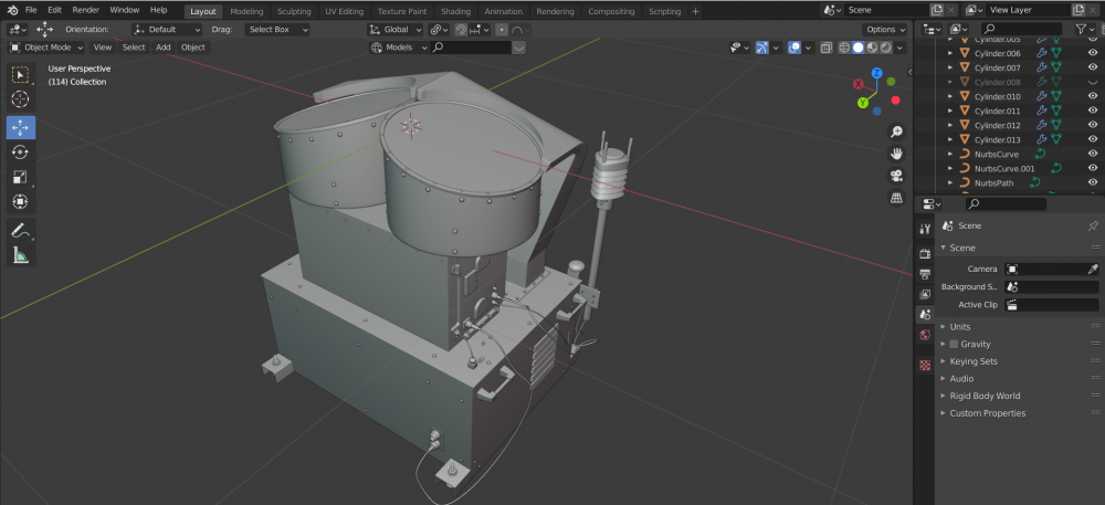 Модели создавали в Blender. В программу загружали фотографии с чертежами и по ним вырисовывали каждую деталь, начиная с крупных и заканчивая самыми мелкими. Когда все детали были готовы, проводилась финальная сборка модели.