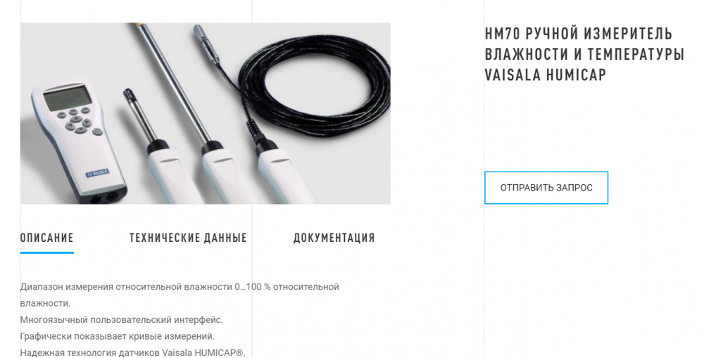 Задача метеорологического оборудования — измерять. А значит, ему понадобится описание, технические данные и прилагающаяся документация. По этим категориям мы и структурировали информацию о приборах в карточке.
