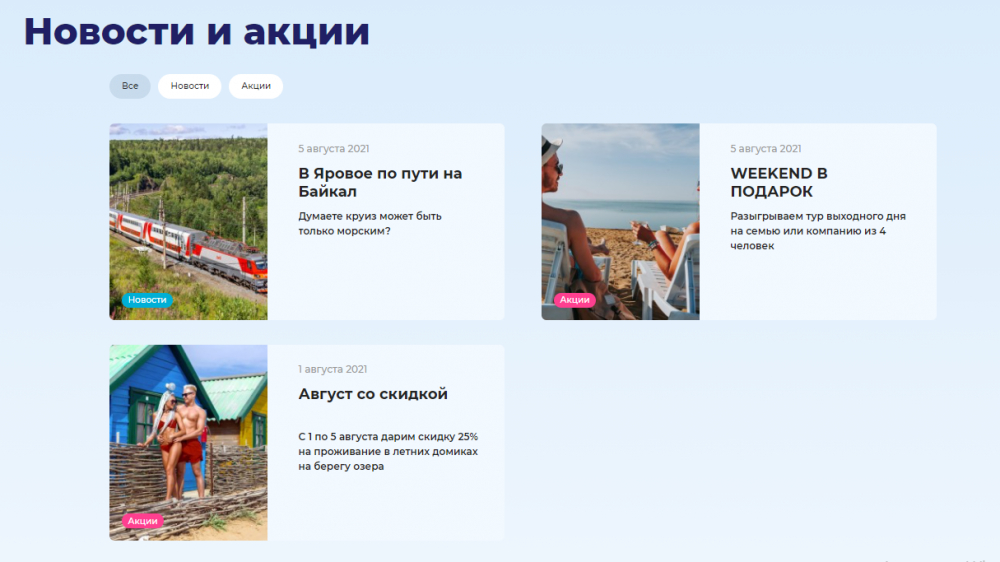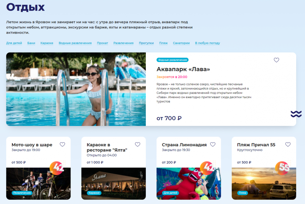 Еще мы внедрили архив событий — так туристы даже в несезон могут посмотреть, какие концерты обычно проходят на курорте. В «Яровое» привозят крупных звезд, и мы хотели, чтобы это преимущество выделялось на сайте всегда.