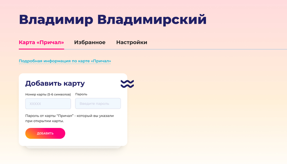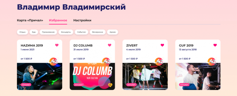Чтобы пополнить карту, пользователь заходит в личный кабинет, который работает еще и как планировщик путешествия. Все места, кафе и развлечения на сайте можно добавлять в избранное, и уже на месте посетить запланированные места.