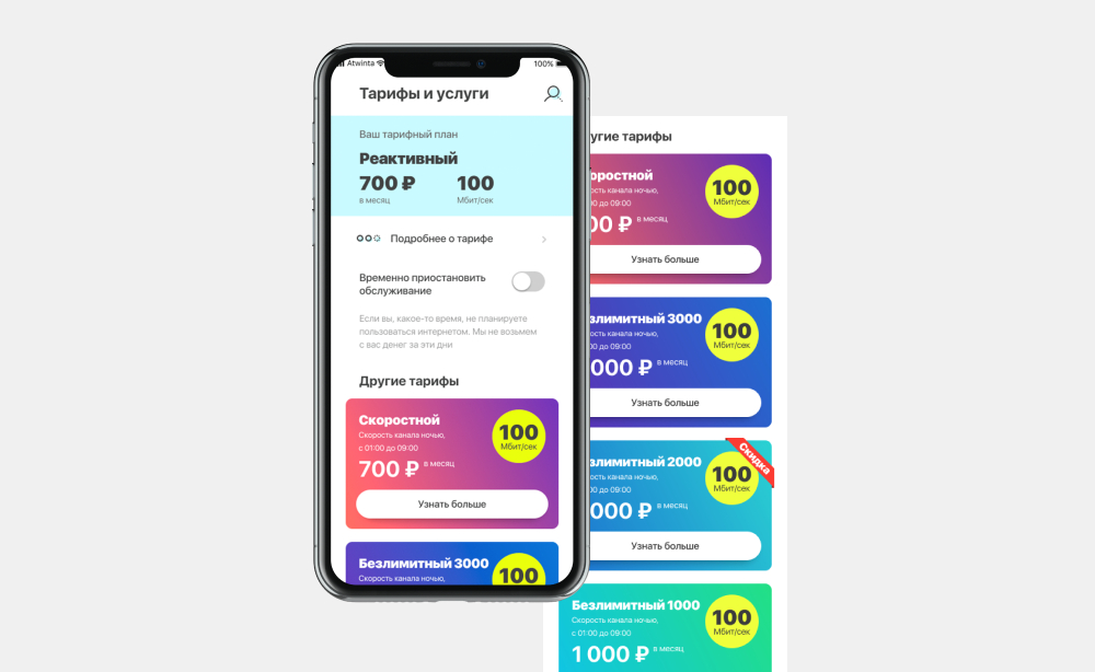 Для управления этими услугами мы интегрировали их биллинг с мобильным приложением и доработали его функциональность: приостановка и автоматическое возобновление начислений при отсрочке платежа или временном отключения услуги.