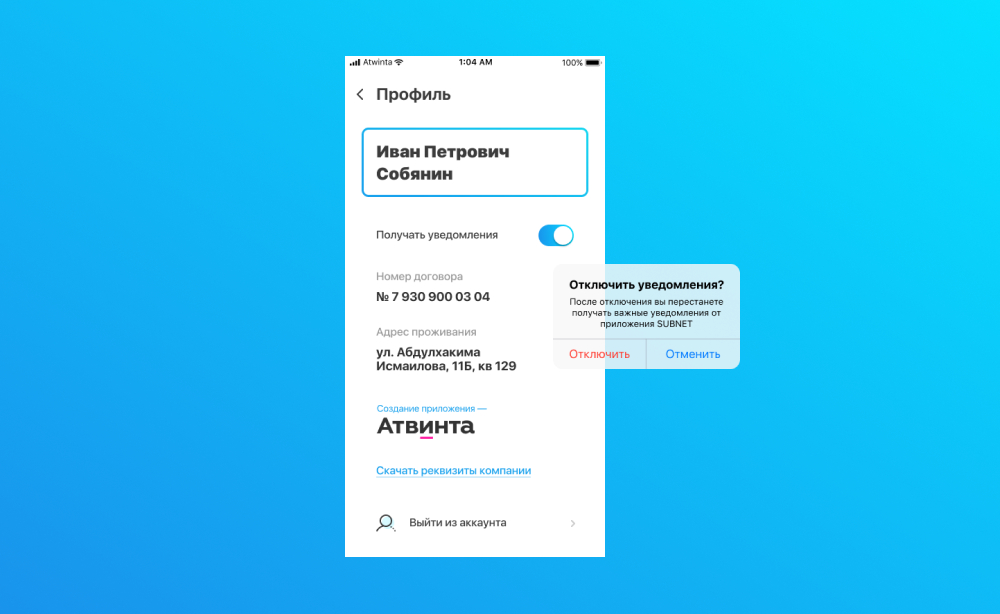 Реализовали систему push-уведомлений. Уведомления сообщают о новостях от Subnet и напоминают абонентам вовремя вносить абонентскую плату.