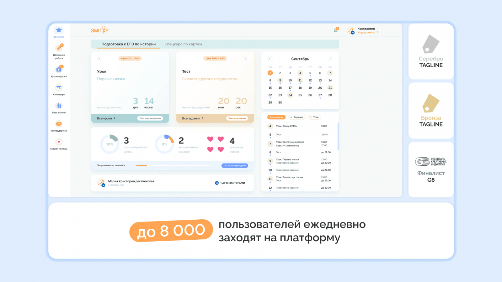 Дашборд с прогрессом, дедлайнами и достижениями снижает тревожность, помогает планировать время и мотивирует продолжать учиться. В СМИТАП уровень удовлетворенности интерфейсом стабильно держится выше 90% именно за счет прозрачности и скорости обратной связи.