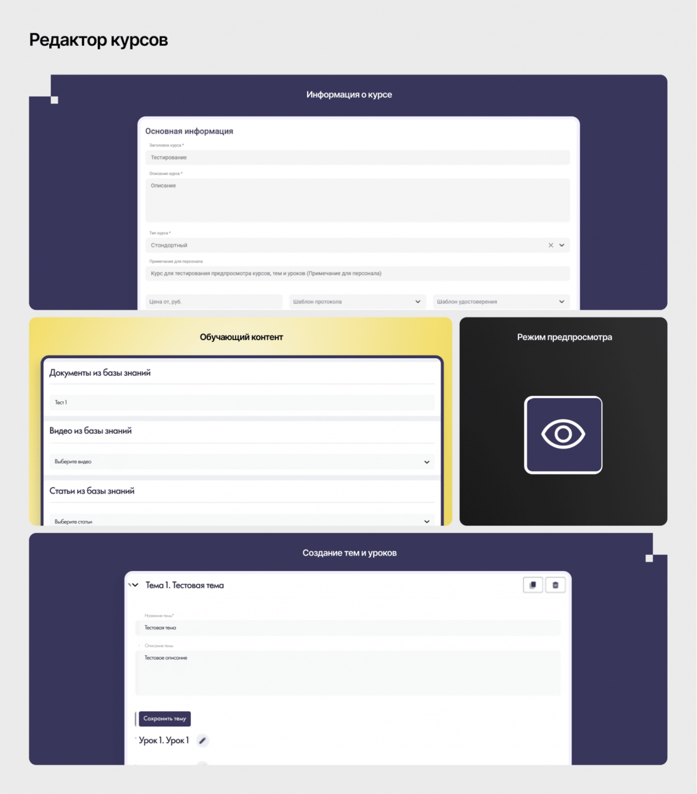 Образовательная платформа состоит из нескольких модулей. Вместе они превращают рутинные задачи в предсказуемый и управляемый процесс, который можно развивать и масштабировать.
