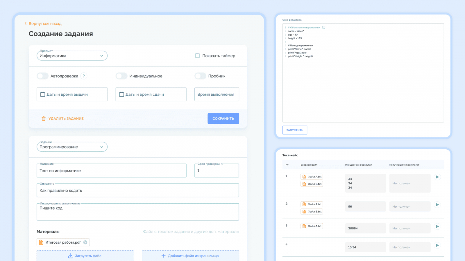 Автоматизированные системы дают быстрый и понятный фидбек. После сдачи работы ученик получает результат, ошибки и рекомендации по улучшению.
