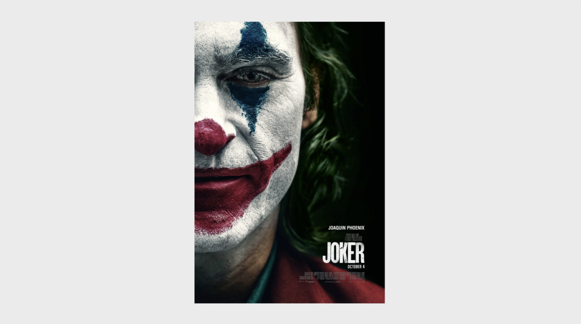 Яркий пример — постер для фильма «Джокер» с изображением Хоакина Феникса на фоне ярких, контрастных цветов. Это изображение не требует пояснений — оно сразу говорит зрителю, что фильм о знаменитом злодее DC, а также что главную роль исполнил известный актер.