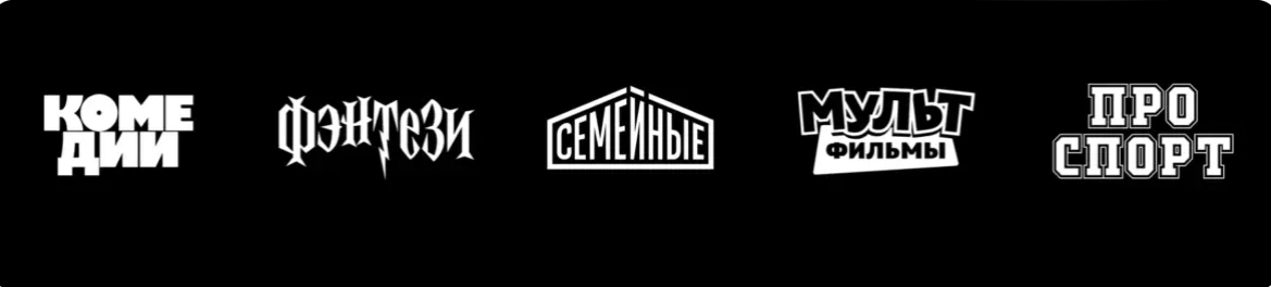 Чтобы понять, как шрифт влияет на восприятие информации, достаточно взглянуть на то, как «Кинопоиск» оформляет разделы по жанрам фильмов. Каждый стиль шрифта подчеркивает характер жанра. Да, во многом это опирается на стереотипы, но здесь другая цель — навигация. Так проще ориентироваться и быстрее понять, что за фильмы тебя ждут.