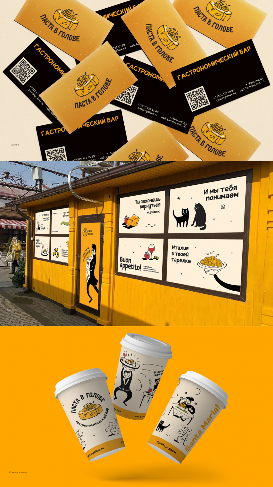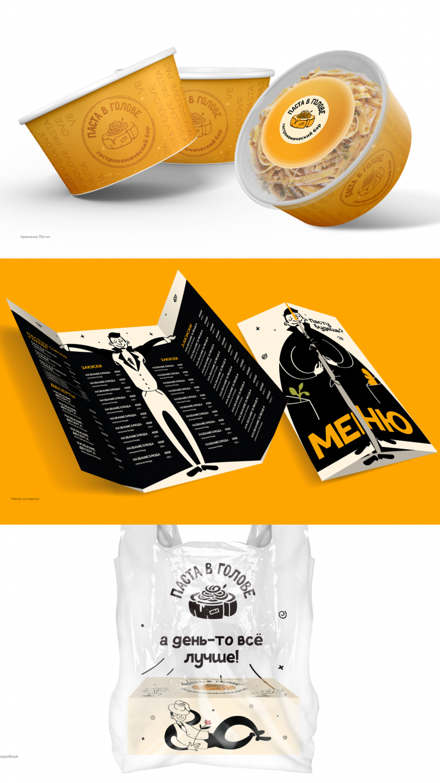 И все это — не просто красивая картинка, а рабочие ингредиенты, которые идеально приправили меню, вывески и даже упаковку. Бренд получился таким же вкусным, как его главное блюдо.