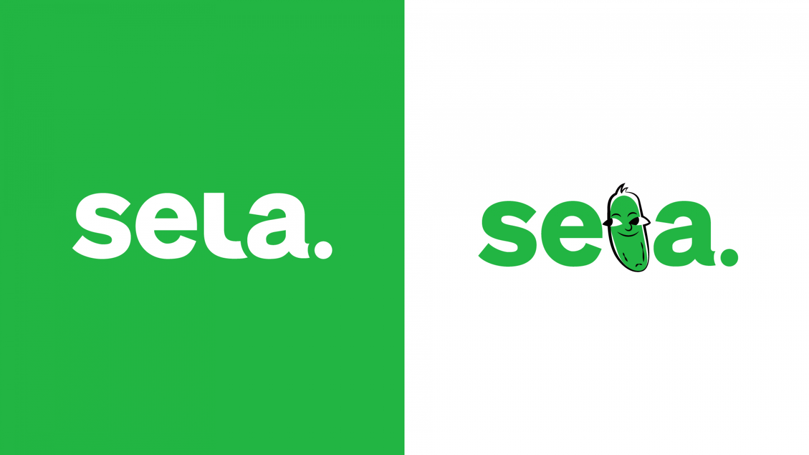 Логотип Sela вытянутый, как огурец. Он легко может встать на место буквы «l»: гладкий, с глянцевым отливом.